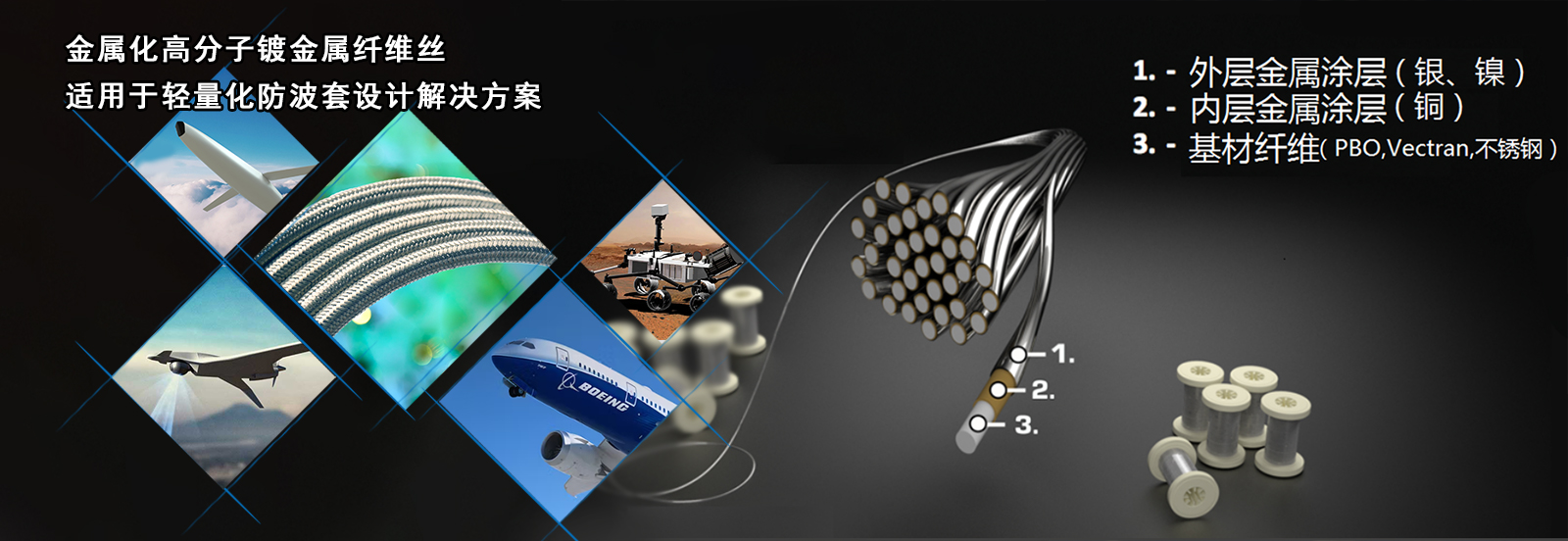 鍍金屬導(dǎo)電纖維絲是在高分子基材上雙層均勻涂鍍金屬,在航空航天線纜減重、機(jī)器人電纜屏蔽層、柔性天線、船舶拖曳電纜等減重和強度性能要求高的精密行業(yè)以更高的性能替代標(biāo)準(zhǔn)銅線,用作電纜、線束EMI屏蔽和專用導(dǎo)線。
